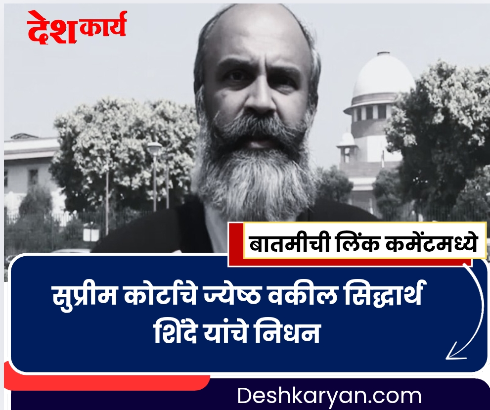 देशातील कायदा क्षेत्राला मोठा धक्का बसला आहे. सुप्रीम कोर्टाचे ज्येष्ठ वकील सिद्धार्थ शिंदे (वय ४९) यांचे हृदयविकाराच्या झटक्याने निधन झाले. सोमवारी न्यायालयीन कामकाजादरम्यान त्यांना अचानक चक्कर आल्याने त्यांना तत्काळ दिल्लीतील एम्स रुग्णालयात हलवण्यात आले. मात्र उपचार सुरू असतानाच मंगळवारी पहाटे त्यांची प्राणज्योत मालवली.