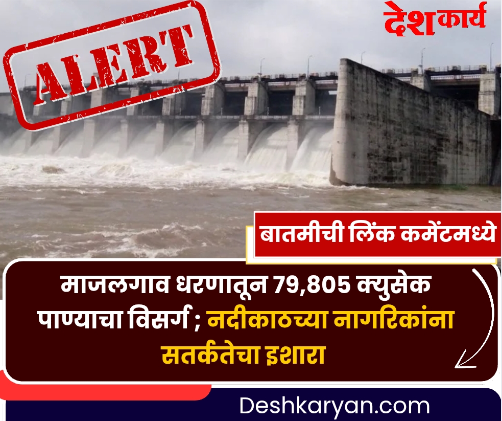 Majalgaon Dam : माजलगाव धरण क्षेत्राच्या पाणलोट क्षेत्रामध्ये काही दिवसांपासून मुसळधार पाऊस पडत असल्यामुळे माजलगाव धरणातील पाणी पातळी ही झपाट्याने वाढत आहे माजलगाव धरणातील पाणी पातळी नियंत्रित ठेवण्यासाठी धरण प्रशासनाने