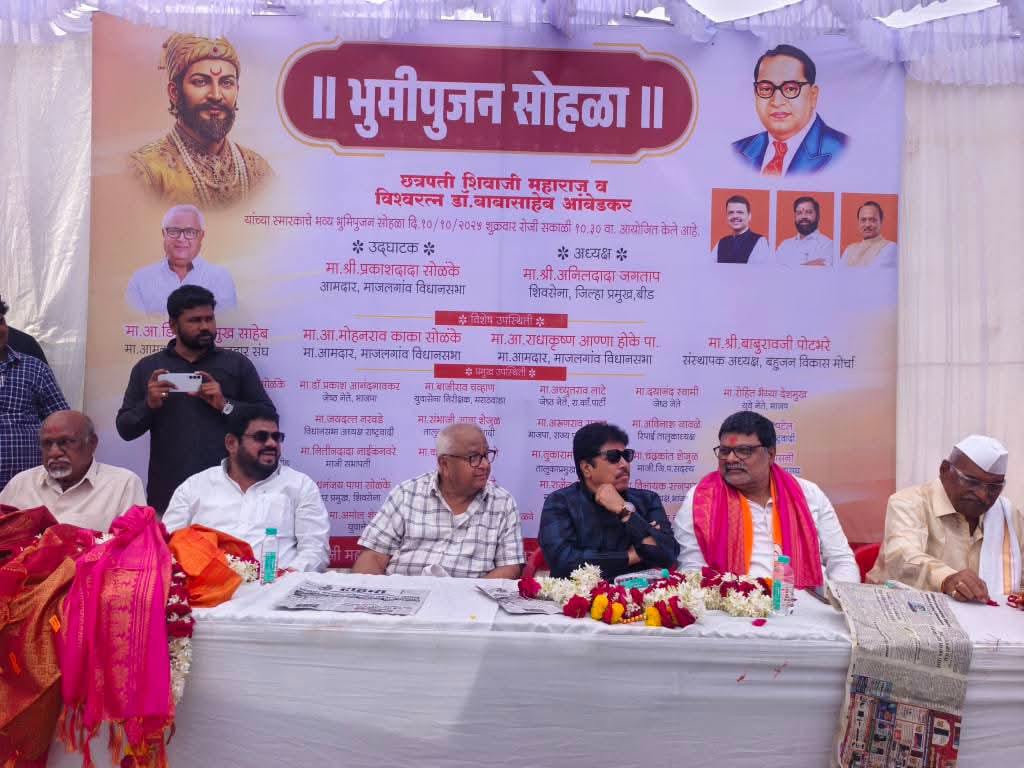 डॉ. बाबासाहेब आंबेडकर यांचे स्मारक होणार असुन या स्मारकाच्या भुमिपुजन कार्यक्रमात दि. 10 शुक्रवारी ते बोलत होते.अध्यक्षस्थांनी शिवसेना जिल्हाप्रमुख अनिल जगताप हे तर उद्घाटक म्हणुन आमदार प्रकाश सोळंके होते. या कार्यक्रमास माजी आमदार राधाकृष्ण होके पाटील, बाबुराव पोटभरे, अच्युत लाटे, दयानंद स्वामी, उपसभापती श्रीहरी मोरे, जयसिंह सोळंके, विरेंद्र सोळंके, खुर्शिद नाईक, सभापती जयदत्त नरवडे, विजय साळवे, अविनाश जावळे, डॉ. अशोक तिडके, खलील पटेल, कचरू खळगे, नासेर पठाण, सुरेंद्र रेदासनी नवनाथ धाईजे, अभिजित पोटभरे, अभय होके पाटील, भिमराव टाकणखार, अरूण राउत, अर्जुन नाईकनवरे, धम्मानंद साळवे, भास्कर शिंदे, राजेश साळवे, अमोल शेरकर, संतोष जेथलिया ईश्वर खुरपे सिध्दार्थ ससाणे, राकेश साळवे, दिनकर शिंदे, उमेश मोगरेकर, कमलेश जाब्रस विलास नेमाणे, विठ्ठल तुपसौंदर, अभिजित कोंबडे, आगार प्रमुख सुहास कोळपकर मुख्याधिकारी पोपट निघळ यांची उपस्थिती होती. पुढे बोलतांना आ. सोळंके म्हणाले की, डॉ. बाबासाहेब आंबेडकर व छत्रपती शिवाजी महाराज यांचे स्मारक व दोन्ही चौकांचे सुशोभिकरण दर्जेदार करण्यात येणार आहे असे सांगीतले तर बहुजन विकास मोर्चाचे अध्यक्ष बाबुराव पोटभरे यांनी सांगीतले की, महापुरूषांचे स्मारक यातुन त्यांची प्रेरणा मिळते. हे दोन्ही स्मारक माजलगावकरांच्या अस्मितेचा प्रश्न होता. मार्गी लागला यामागे सर्व माजलगावकरांचे श्रेय आहे. यावेळी माजी आमदार राधाकृष्ण होके पाटील यांनी 1978 पासुन या दोन्ही स्मारकांच्या पाठपुराव्याचा आलेख सर्वांसमोर मांडला तर यावेळी विजय साळवे, अविनाश जावळे, दयानंद स्वामी यांनी मनोगत व्यक्त केले. सुत्रसंचालन धनंजय सोळंके तर आभार तालुकाप्रमुख तुकाराम येवले यांनी मानले माजलगाव मतदारसंघामध्ये नगरविकास खात्यामार्फत उपमुख्यमंत्री एकनाथराव शिंदे यांनी भरिव निधी दिलेला असल्याने मोठ्या प्रमाणावर विकास कामे झाली आहेत. शहरामध्ये होत असलेल्या डॉ. बाबासाहेब आंबेडकर व छत्रपती शिवाजी महाराज यांच्या भव्य – दिव्य स्मारकांकरीता ना. एकनाथराव शिंदे यांचेकडुन मोठ्या प्रमाणावर निधी आणण्यात येईल. आगामी नगरपालिका निवडणुकीत माजलगाव नगरपालिकेचे नगराध्यक्षपद शिवसेनेसाठी सोडावे असेही शिवसेना जिल्हाप्रमुख अनिल जगताप यांनी सांगितले