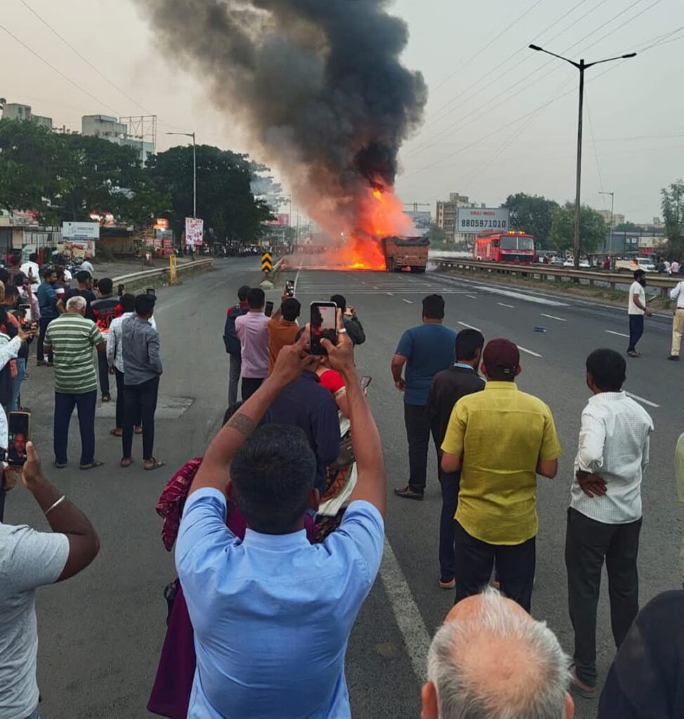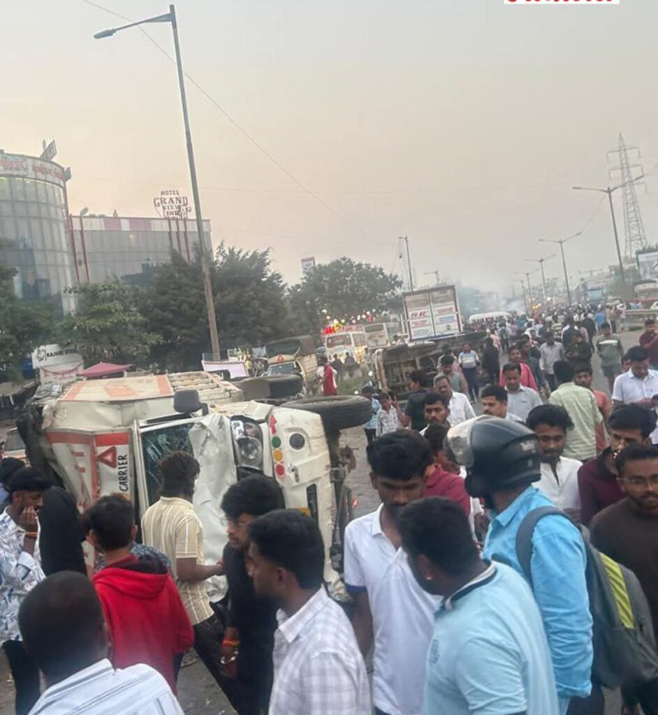 अपघातानंतरचा दृश्य इतका भयावह होता की, अनेक गाड्या उलटल्या, काही वाहनं पेट घेतली. एका मारुती सुझुकी डिझायर कारचा चक्काचूर झाला आहे. कार इतकी चिरडली गेली की तिच्यातील प्रवाशांचा कोळसा झाला, अशी माहिती पोलिस सूत्रांनी दिली.