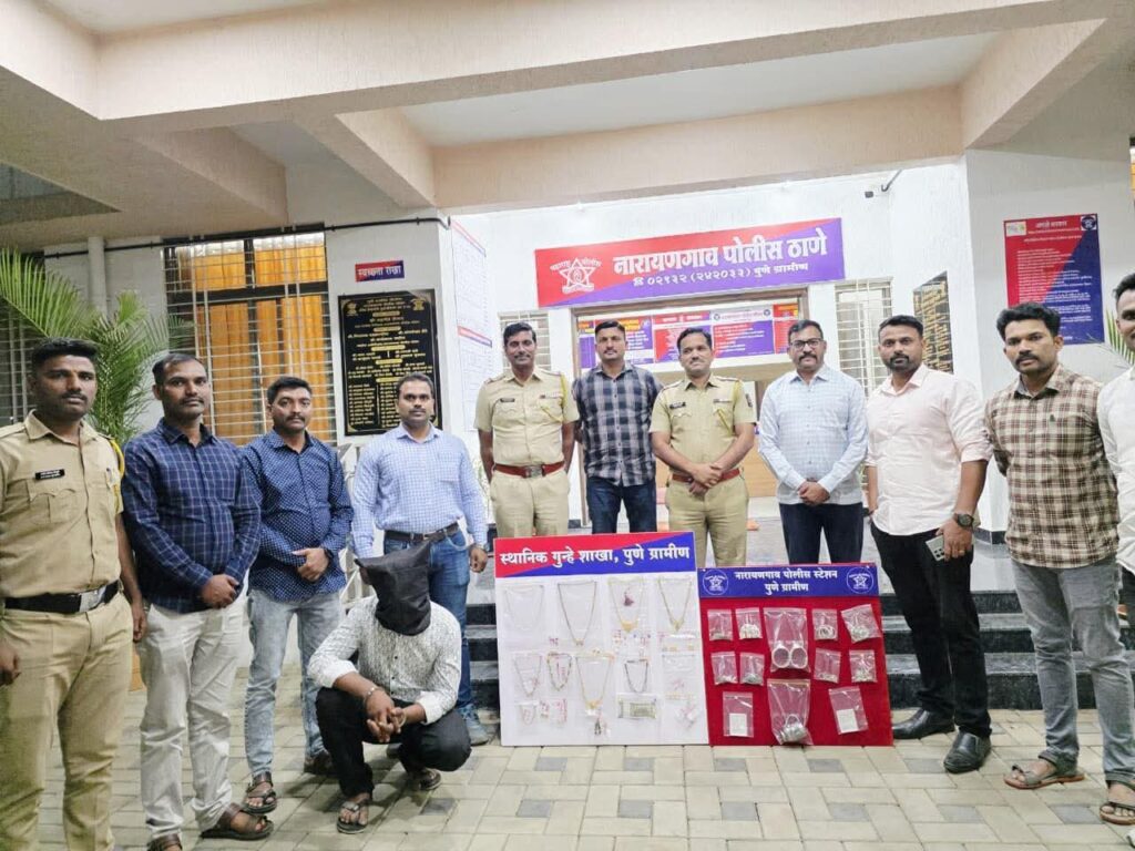 नारायणगावच्या वैभवलक्ष्मी सोसायटीतील रहिवासी विष्णू भागूजी सांगडे (वय ६२) हे दिवाळी निमित्त दागिने घरी घेऊन आले होते. १४ ऑक्टोबर रोजी पहाटे ते पत्नीसमवेत मुक्ताबाई देवीच्या काकड आरतीसाठी गेल्याचा फायदा घेत अज्ञात चोरट्याने कडी-कोयंडा तोडून घरात प्रवेश केला. कपाटातील सोने-चांदीचे दागिने व रोख रक्कम मिळून सुमारे ११ लाखांहून अधिक किमतीचा मुद्देमाल चोरून नेला होता. या प्रकरणाची नोंद नारायणगाव पोलीस स्टेशनमध्ये झाली होती.