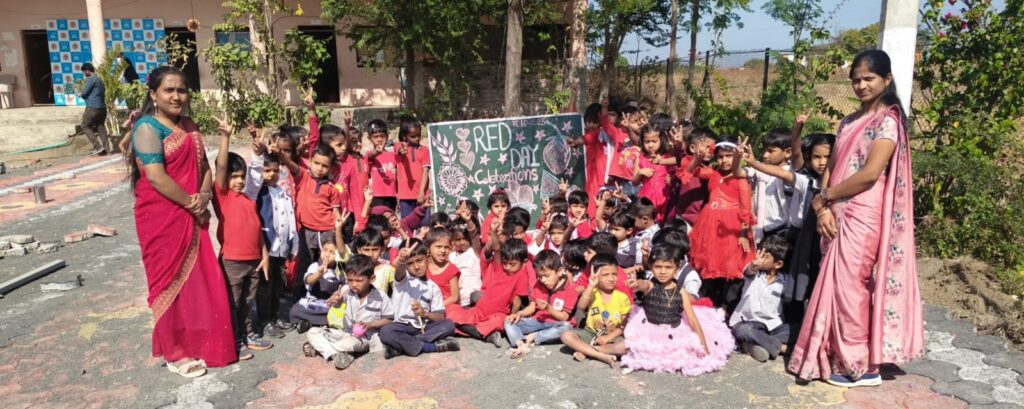 शाळेचे मुख्याध्यापक श्री. मधुकर जाधव यांच्या मार्गदर्शनाखाली या उपक्रमाचे आयोजन करण्यात आले. यावेळी संपूर्ण शाळा लाल रंगात न्हाऊन निघाल्याचे चित्र पाहायला मिळाले. विद्यार्थी लाल रंगाची वस्त्रे परिधान करून शाळेत आले होते. तसेच लाल सफरचंद, डाळिंब, टोमॅटो, लाल फुगे, खेळणी व इतर साहित्य घेऊन त्यांनी उपक्रमात उत्स्फूर्त सहभाग नोंदविला.